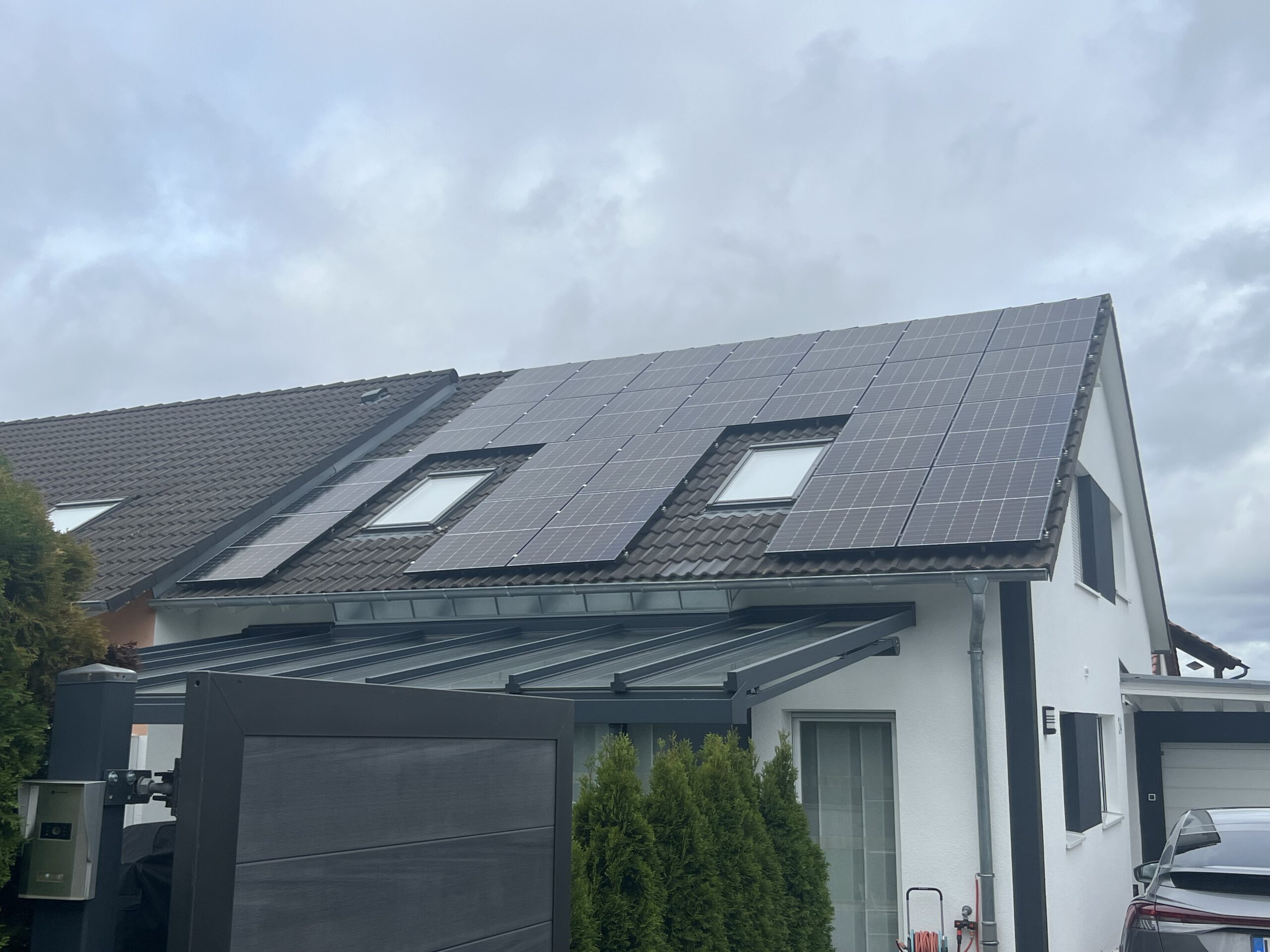 Eine Photovoltaikanlage wandelt Sonnenlicht direkt in Strom um. Die Solarmodule auf Ihrem Dach bestehen aus Solarzellen, die das Sonnenlicht in Gleichstrom umwandeln. Ein Wechselrichter wandelt diesen Gleichstrom in Wechselstrom um, der in Ihrem Haushalt genutzt oder ins Stromnetz eingespeist werden kann.